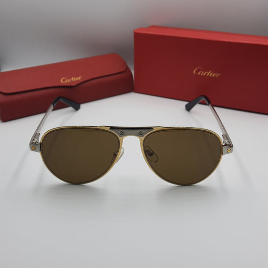 Solaires: CARTIER SANTOS CT0533S argenté doré marron