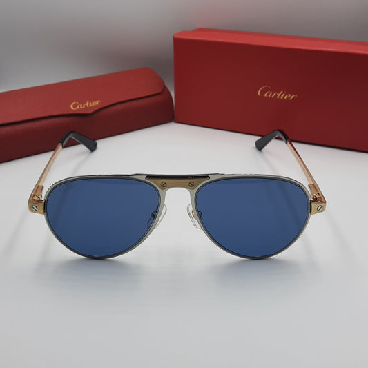 Solaires: CARTIER SANTOS CT0533S doré bleu foncé