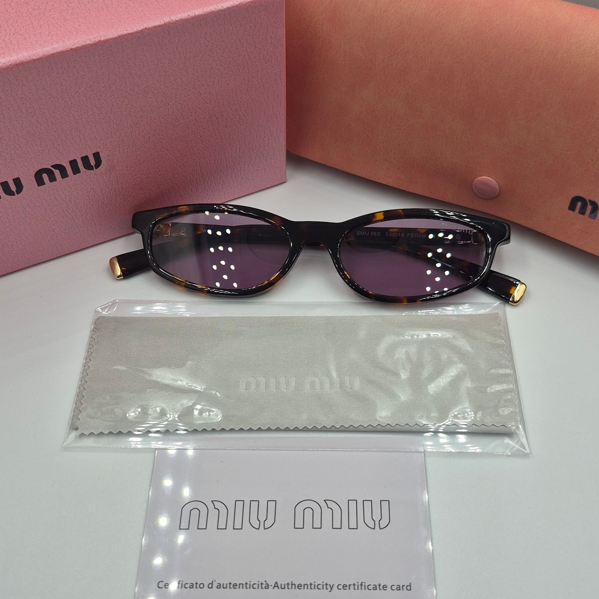 | Autres détails relatifs aux lunettes | Ces paires de lunettes sont livrées avec un étui MIUMU et un chiffon de nettoyage. Full Packaging lunettes de soleil MIUMIU. |